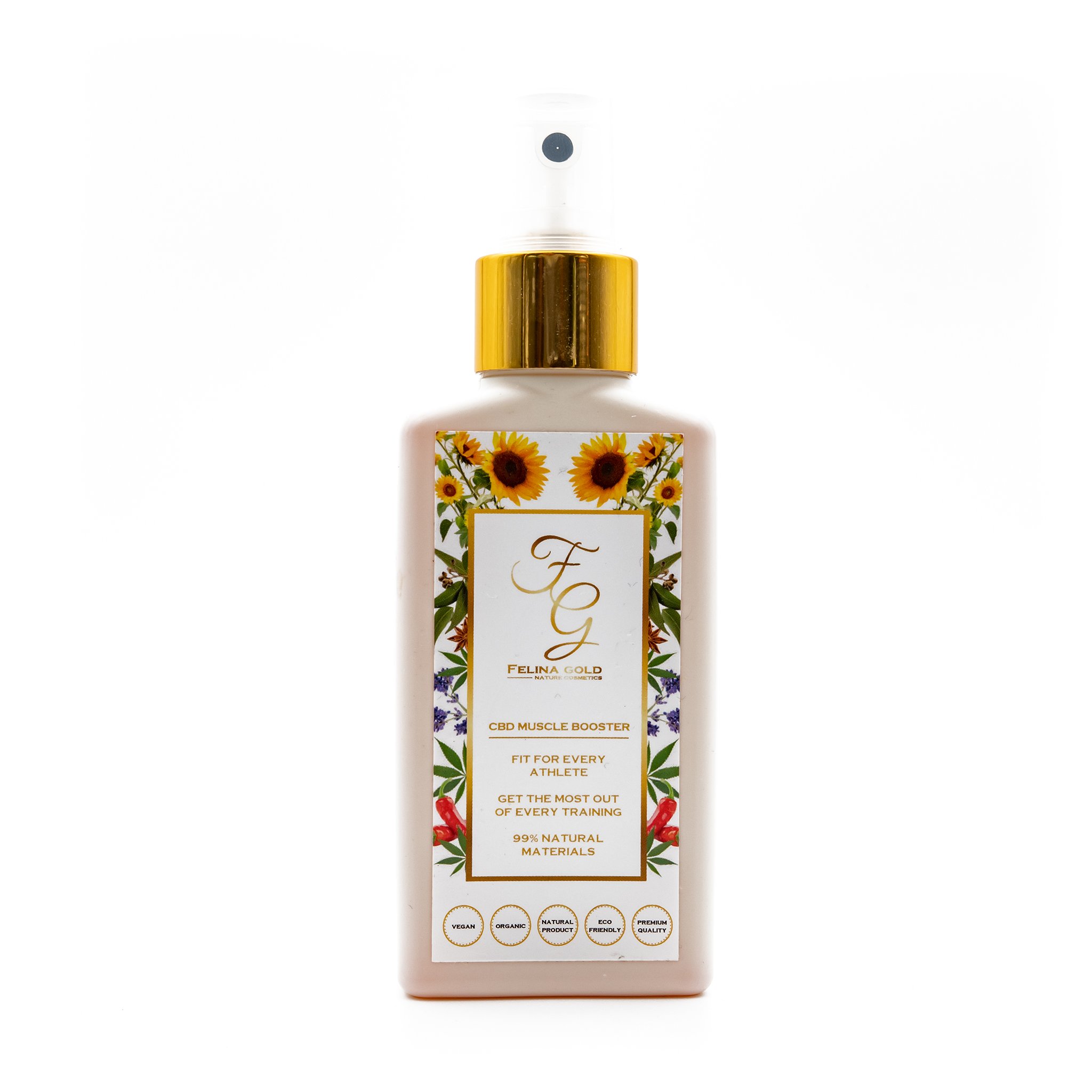 Luksus-massageolie fra Felina Gold med h?j optagelsesevne gennem huden. Massageolien indeholder CBD og hindb?r-ekstrakt. Indeholder ikke THC.